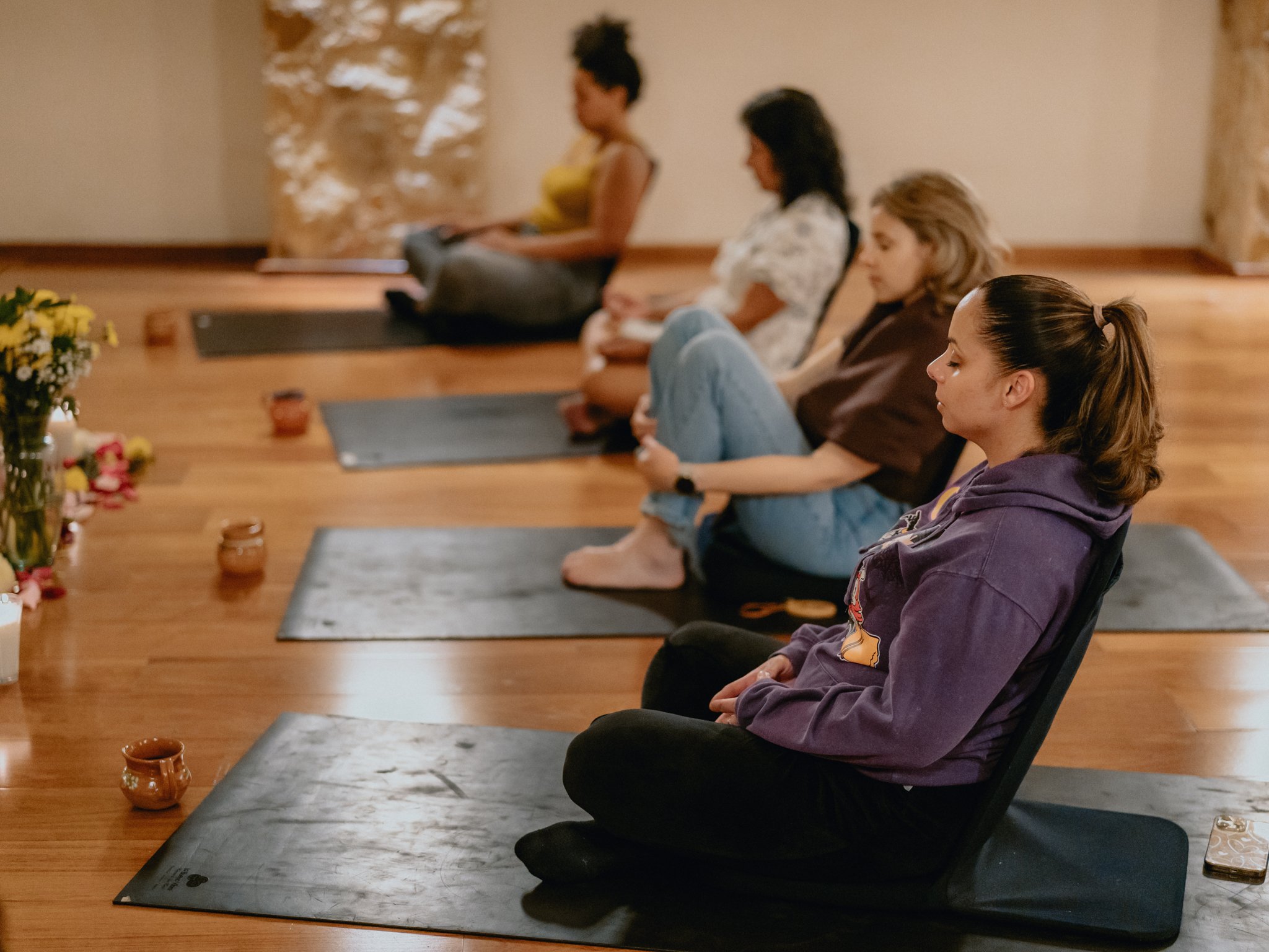 Meditation, somatic integration, grounding practices, reiki, and group sharing circles.
